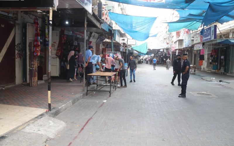 شرفت بلدية مخيم النصيرات وسط قطاع غزة بالتعاون مع شرطة البلديات بتنفيذ حملة تنظيم البسطات في شارع القسام.