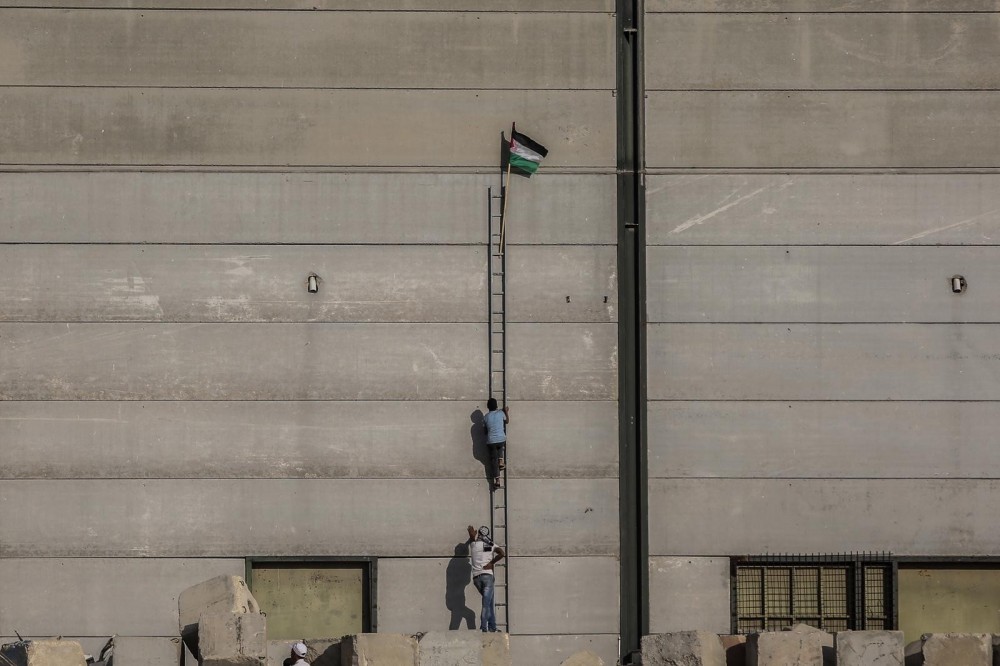 الصور التي تقدم بها المصور عطية دوريش للجنة وفازت بالمركز الأول، حيث تُشكل قصة مصورة حول رفع العلم الفلسطيني.