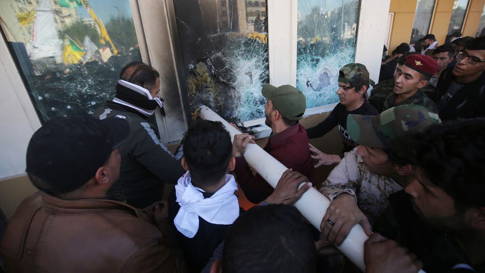 يذكر أن محتجين عراقيين يحملون أعلام ميليشيات موالية لإيران، هاجموا، الثلاثاء، البوابة الرئيسية للسفارة الأميركية في بغداد، وأحرقوا إحدى بواباتها ومقار الحماية الأمنية وأعلاما وحطموا كاميرات مراقبة.