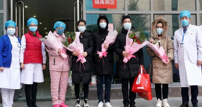نشرت وكالة أنباء الصين الجديدة "شينخوا" صورًا لمُتعافين من فيروس كورونا القاتل يودّعون الطاقم الطبي ويلتقطون معهم الصور التذكارية، بعد شفائهم في المستشفى الأول التابع لجامعة تشنجتشو في مقاطعة خنان بوسط الصين، الخميس.