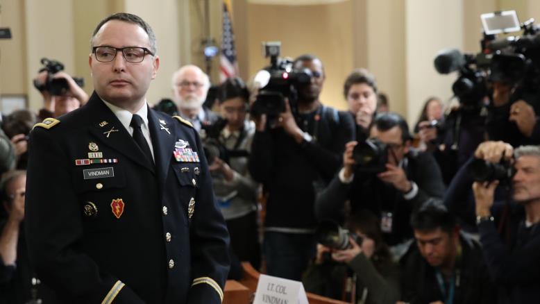 وقال فيندمان المولود في أوكرانيا والذي استدعاه الكونغرس للإدلاء بشهادته أنه "من غير اللائق لرئيس الولايات المتحدة أن يطالب حكومة أجنبية بالتحقيق مع مواطن أميركي وخصم سياسي".