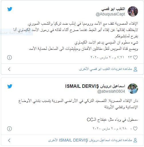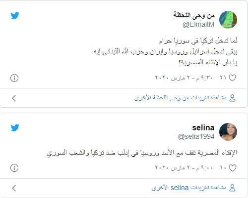 وكانت الحكومة المصرية أدانت بشكل رسمي التدخل التركي في سوريا وليبيا، رغم أن مصر متورطة بدعم قوات خليفة حفتر عسكريا.