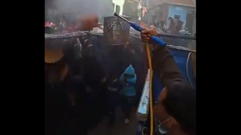 وأظهر الفيديو، الحضور والمعازيم من أقارب العروسين والمواطنين والأهالي، وهم يتلقون الرش والتعقيم من خلال أحد الواقفين، فيما كان الرش والتعقيم يستهدف الحضور والأجهزة وسيارة الدي جي.