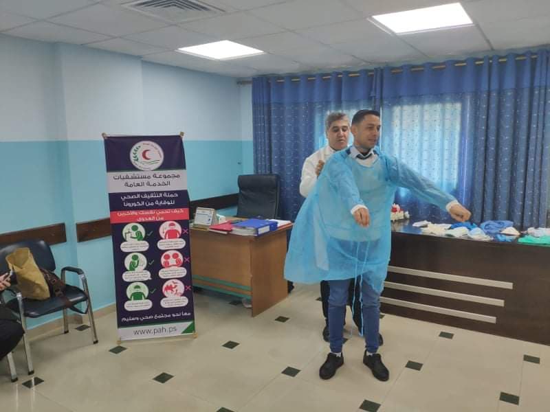- عقدت إدارة مستشفيات الخدمة العامة بغزة مجموعة من اللقاءات التدريبية للموظفين العاملين في الجانب الإداري والجانب ، وذلك في إطار متابعة أخر المستجدات حول مرض كورونا وتثقيف العاملين في كيفية الوقاية داخل وخارج المؤسسات الصحية ،وكيفية التعامل مع المرضى والمشتبه إصابتهم بعد انتشار المرض في عدة دول خارجية.