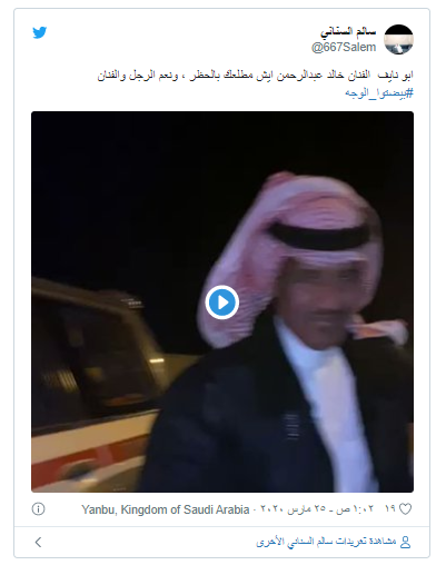 أثار مقطع مصور للفنان السعودي خالد عبد الرحمن، مع عناصر من الحرس الوطني خلال فترة حظر التجوال المفروضة في السعودية، لمواجهة انتشار فيروس كورونا، انتقادات واتهامات له بخرق الحظر.