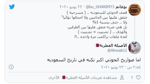 وقال بوغانم في سلسلة تغريدات رصدتها “وطن”، إن “قصف الحوثي للسعودية “مسرحية” متفق عليها بين الجانبين، ولا أصدقها نهائياً ولا حتى 1 بالمائة، بل هي ضربة متفق عليها بين الطرفين، والهدف “تشتيت*تشتيت”.