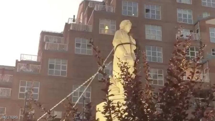 وظهر في صور نشرتها صحيفة "بالتيمور صن" اليومية متظاهرون يقومون بإسقاط تمثال المستكشف الإيطالي بواسطة حبل بالقرب من منطقة ليتل إيتالي.