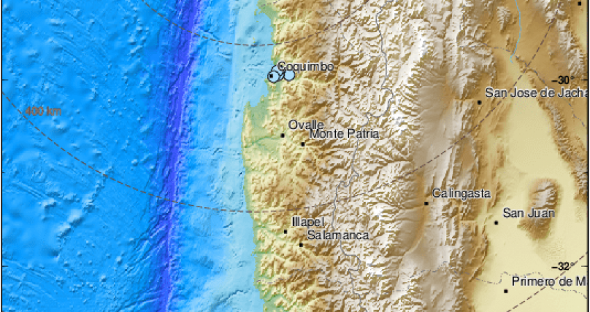 وتم تحديد مركز الزلزال، الذي وقع على عمق 14.3 كم، مبدئيا عند ملتقى دائرة عرض 27.929 درجة جنوبا وخط طول 71.394 درجة غربا.