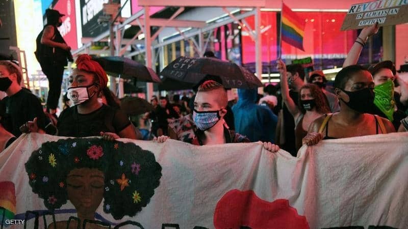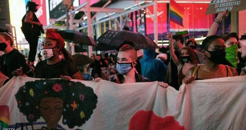 وتجمع العشرات، يوم الخميس، في ساحة "تايمز سكوير" في نيويورك مطالبين بتحقيق العدالة وإصلاح الشرطة.
