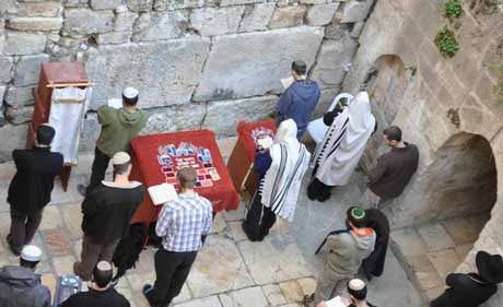 قام العشرات من المغتصبين المتطرفين بأداء شعائر توراتية في رباط الكرد بالجدار الغربي للمسجد الأقصى والمحاذي لباب الحديد أحد أبواب المسجد الأقصى بحراسة شرطية. وكانت جماعات يهودية دعت إلى إقامة شعائر توراتية عند وقف رباط الكرد وهو جزء من الجدار الغربي للمسجد الأقصى وبالتحديد عند باب الحديد. وجاء في دعواتها أن هذه الشعائر بمناسبة صيام العاشر من الشهر العبري الجاري، واستكمالا لمراسيم إشعال الشمعدان خلال عيد "الحانوكاه" الذي احتفلوا به في الأسبوع الماضي. وقالت هذه الجماعات أن إقامة هذه الشعائر على طول اليوم خاصة في الفترة الصباحية والمسائية هو جزء من النشاط لإعادة السيطرة الكاملة على رباط الكرد الذي يطلقون عليه مسمى "المبكى الصغير". حيث يدعون أن هذا الحائط بطول ٢٥ مترا هو الأقرب إلى قدس الأقداس المزعوم وهو جزء من الهيكل المزعوم. من جهته، أكد رئيس مجلس الأوقاف الإسلامية الشيخ عبد العظيم سلهب أن حائط البراق ورباط الكرد جزء لا يتجزأ من الجدار الغربي للمسجد الأقصى المبارك ، وهو وقف إسلامي صحيح ، لا يجوز الاعتداء عليه أو المساس به". وقال الشيخ سلهب: "وهو جزء من العقارات المحاذية للمسجد ووقف إسلامي لا يجوز التفريط فيه، وجزء لا يتجزأ من المسجد الأقصى وعقيدة مليار ونصف مليار مسلم". وأضاف: " وواجب ديني وعقائدي على كل مسلم ومواطن من المنزرعين داخل المسجد الأقصى وحوله الذين يعيشون في رباط الكرد أن يمنعوا الاعتداء عليه، وتفويت الفرص أمام الجماعات اليهودية". من ناحيتها، حذرت مؤسسة الأقصى للوقف والتراث من تزايد نشاطات اذرع الاحتلال للسيطرة على هذا الجزء من المسجد الأقصى، في محاولة منها لربط هذا الجزء مع منطقة البراق وشبكة الأنفاق، بهدف الاقتراب أكثر فأكثر إلى المسجد الأقصى كي تشكل هذه المواقع نقاط انطلاق لاقتحام المسجد الأقصى من أكثر من موقع. وأكدت مؤسسة الأقصى أن رباط الكرد هو جزء لا يتجزأ من المسجد الأقصى وهو حق خالص للمسلمين. [img=122012/re_1356302171.jpg]متطرفون يؤدون طقوس تلمودية على الحائط الغربي للأقصى[/img] [img=122012/re_1356302198.jpg]متطرفون يؤدون طقوس تلمودية على الحائط الغربي للأقصى[/img] [img=122012/re_1356302202.jpg]متطرفون يؤدون طقوس تلمودية على الحائط الغربي للأقصى[/img] [img=122012/re_1356302205.jpg]متطرفون يؤدون طقوس تلمودية على الحائط الغربي للأقصى[/img] [img=122012/re_1356302210.jpg]متطرفون يؤدون طقوس تلمودية على الحائط الغربي للأقصى[/img] [img=122012/re_1356302214.jpg]متطرفون يؤدون طقوس تلمودية على الحائط الغربي للأقصى[/img] [img=122012/re_1356302218.jpg]متطرفون يؤدون طقوس تلمودية على الحائط الغربي للأقصى[/img] [img=122012/re_1356302223.jpg]متطرفون يؤدون طقوس تلمودية على الحائط الغربي للأقصى[/img]