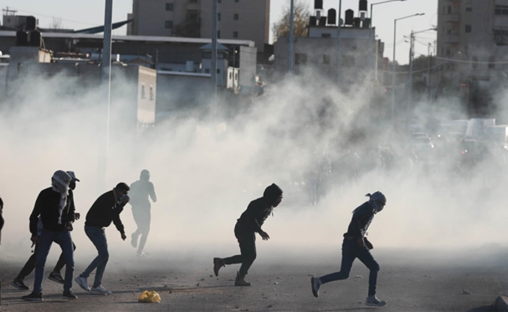 وفي رام الله، أطلق جنود الاحتلال قنابل الغاز المسيل للدموع، وقنابل الصوت، صوب الشبان، خلال المواجهات التي اندلعت في قرية النبي صالح، شمال مدينة رام الله.