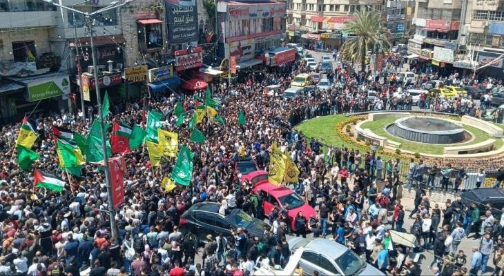 وفي السياق ذاته، حشدت الكتلة الإسلامية بجامعة النجاح الوطنية بنابلس، جموع الطلبة والجماهير الفلسطينية، للمشاركة في تشييع جثامين شهداء القسام الأبطال.