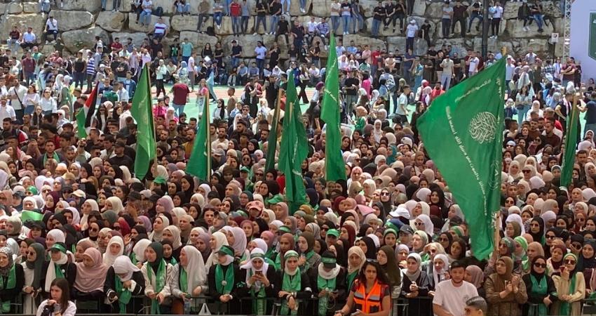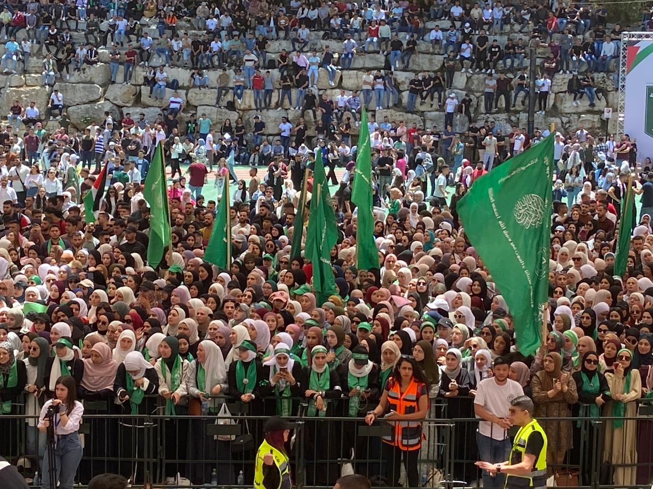 وتزين المرش العسكري برايات حركة حماس، ومشاركة العشرات من الملثمين، وحظيت الدعاية الانتخابية للكتلة الإسلامية باهتمام طلابي كبير، لما تضمنته من محتوى وطني بارز.