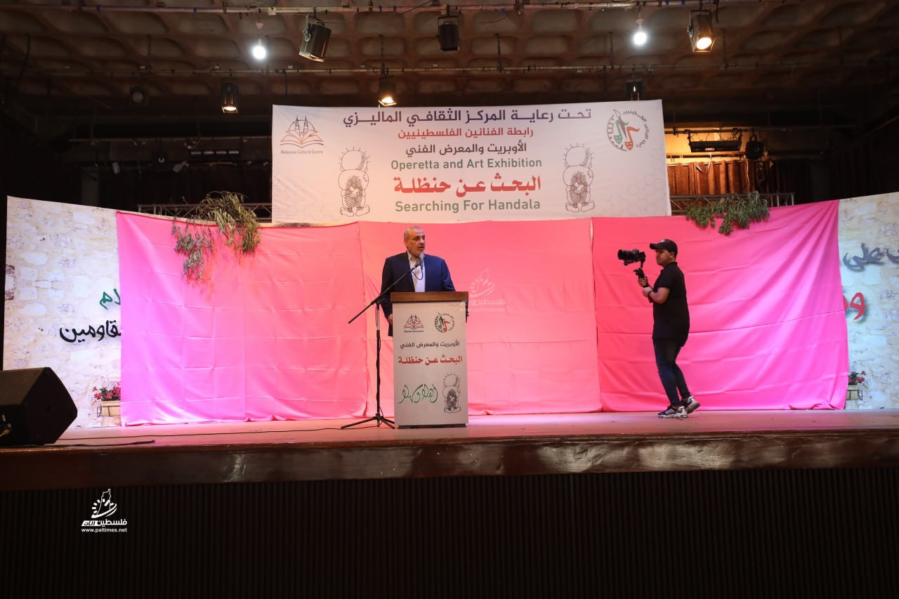 أقام المركز الفلسطيني للثقافة والإبداع ورابطة الفنانين الفلسطينيين، مساء الأحد الأوبريت الفني "البحث عن حنظلة" في الذكرى الـ75 للنكبة الفلسطينية تحت رعاية المركز الثقافي الماليزي في قاعة مركز رشاد الشوا بمدينة غزة.