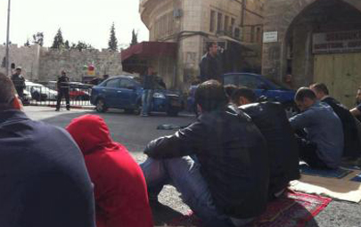 أدى مئات المواطنين اليوم الجمعة، الصلاة في شوارع مدينة القدس وأزقة البلدة القديمة تلبية لدعوات أطلقتها مجموعات شبابية، رداً على منع قوات الاحتلال المصلين دون سن الـ(50) عاماً من دخول المسجد الأقصى. وجاءت الدعوات ضمن حملة "انزل صلِّ بالشارع" للأسبوع الثاني على التوالي, والتي انتشرت على صفحات التواصل الاجتماعي. وذكر الناشط في مركز البستان الثقافي محمود غيث لمراسلنا، أن الاحتلال يحاول فرض سيطرته على مدينة القدس من خلال التحكم بتحركات وحريات سكانها تمهيداً لإخلائهم من مدينتهم. وأضاف غيث أن حملة "انزل صلِّ بالشارع" جاءت تأكيداً من المقدسين على أنهم متمسكين بمدينتهم وأقصاهم مهما وضع الاحتلال من قيود وإجراءات، مشيراً إلى أنهم لطما كانوا وسيبقوا خط الدفاع الأول عن القدس. وكانت شرطة الاحتلال الإسرائيلي، أعلنت عن فرض قيود مشددة على دخول المصلين إلى المسجد الأقصى المبارك، من بينها منع الرجال دون الـ50 عاماً من دخول الأقصى، والسماح بالدخول لحملة الهوية الزرقاء فقط، فيما لم تفرض قيود على دخول النساء. وتتضمن إجراءات الاحتلال والتي تتواصل للجمعة الرابعة على التوالي، فرض إجراءات مشددة ونشر قوات معززة في البلدة القديمة وأزقتها, إضافة إلى محيط الحرم القدسي الشريف. [img=042013/view_1365176255.jpg]صلاة الجمعة في شوارع القدس[/img] [img=042013/view_1365176319.jpg]صلاة الجمعة في شوارع القدس[/img]