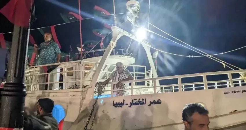 وانطلقت سفينة "عمر المختار" من العاصمة الليبية طرابلس يوم 21 من أيول/سبتمبر الجاري باتجاه المياه الإقليمية لليبيا، للالتحاق بأسطول الصمود الدولي لكسر الحصار الإسرائيلي المفروض على قطاع غزة منذ 18 عاما.