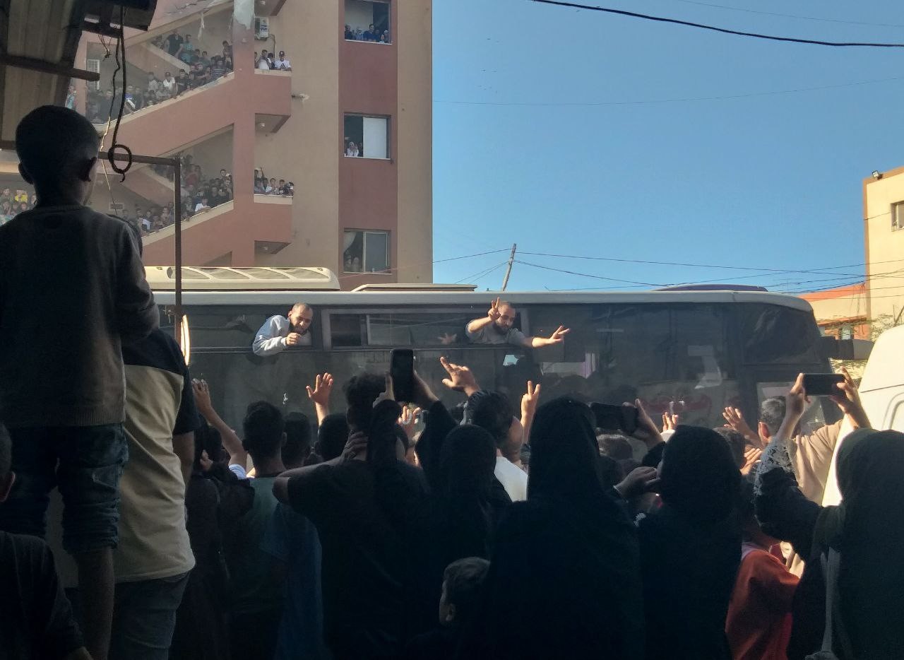 وأفرجت سلطات الاحتلال، ظهر اليوم، عن الدفعة الأولى من المعتقلين التي تضم 96 معتقلا محررا من ذوي المؤبدات والأحكام العالية، من سجن "عوفر" غرب مدينة رام الله، إلى قصر رام الله الثقافي في بيتونيا، في إطار المرحلة الأولى من اتفاق وقف إطلاق النار.