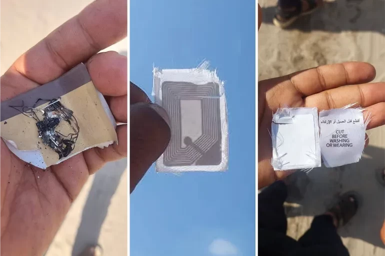 تداول مستخدمون على منصات التواصل الاجتماعي في غزة منشورات تحذر مما قيل إنها "شريحة تتبّع دقيقة" وُجدت داخل ملصق قميص.