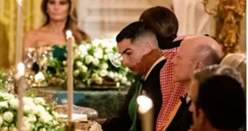 وجلس اللاعب البالغ 40 عاما والذي ينتهي عقده مع نادي النصر السعودي نهاية الصيف، قرب المعقد المخصص لترامب، إلى رأس الطاولة، قبل ثوانٍ من دخول الرئيس وابن سلمان.