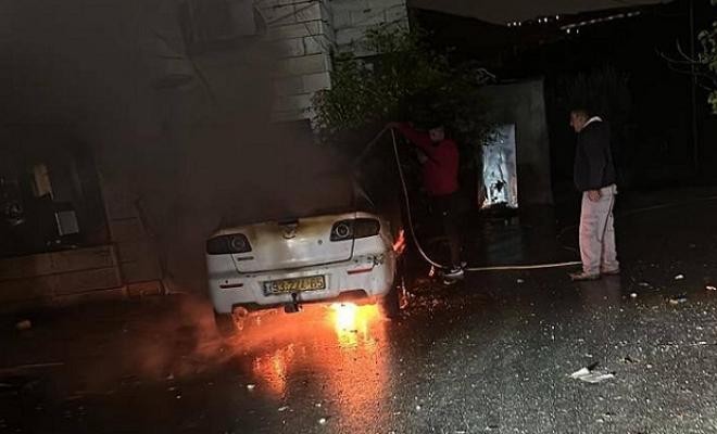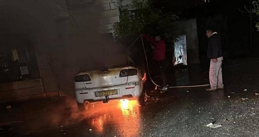 مستوطنون يحرقون مركبات فلسطينية ويخطون شعارات عنصرية