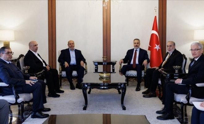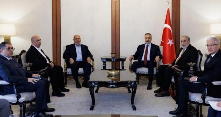التقى وفد قيادي رفيع المستوى من حركة "حماس"، اليوم الأربعاء، بوزير الخارجية التركي هاكان فيدان في العاصمة التركية أنقرة، وذلك لمناقشة آخر التطورات السياسية والميدانية في الساحة الفلسطينية.