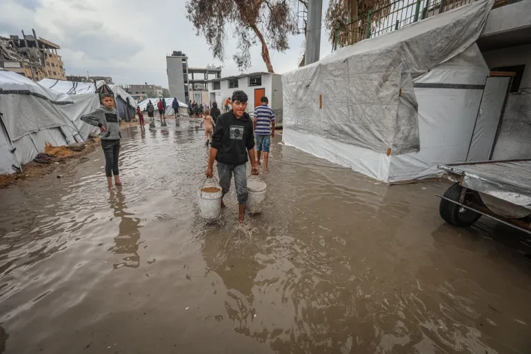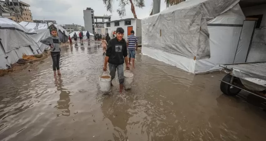 يأتي ذلك فيما عصفت الرياح العاتية بخيام النازحين البالية، مع إصرار "إسرائيل" على منع دخول مستلزمات الإيواء.
