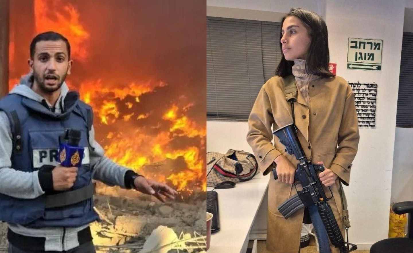 وعلى الضفة الأخرى من المشهد، حيث تُقلب الموازين بدم بارد، ظهرت مذيعة "القناة 14" العبرية في صورةٍ تذكارية. لم تكن تحمل ميكروفوناً ولا دفتراً للملاحظات، بل كانت تحتضن سلاحاً نارياً وتوزع الابتسامات أمام العدسة.
