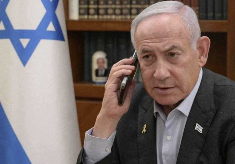 نتنياهو يغطي كاميرا هاتفه مشعلا مواقع التواصل الاجتماعي