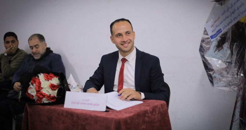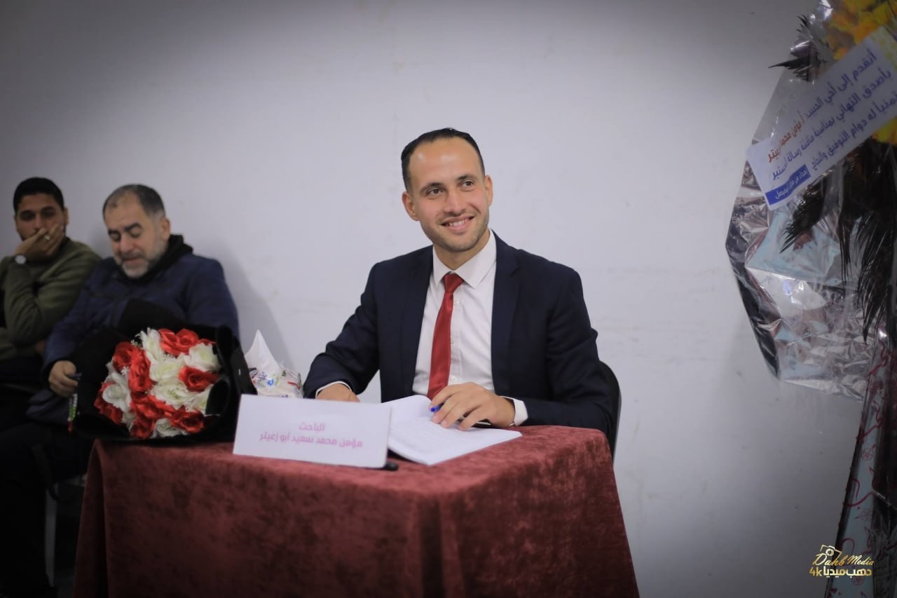 لم تكن مناقشة أطروحة الباحث مؤمن أبو زعيتر مجرد "بروتوكول أكاديمي"، بل كانت عملية "كوماندوز" تعليمية في قلب مخيم جباليا؛ حيث الموت يتربص خلف كل زاوية. في الوقت الذي كانت فيه طائرات الاحتلال ترسم أحزمة النار في سماء غزة، كان مؤمن يخطّ بحبر الإصرار الفصل الأخير من رحلته العلمية، محققاً ما يشبه المستحيل: "درجة الماجستير بتقدير ممتاز" وسط عدوانٍ لم يترك حجراً على حجر.