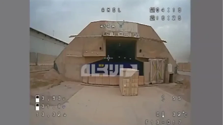 نشرت كتائب حزب الله العراقية، المدعومة من إيران، مقطع فيديو التقطته طائرة مسيرة لهجوم على قاعدة النصر الأمريكية قرب مطار بغداد الدولي.