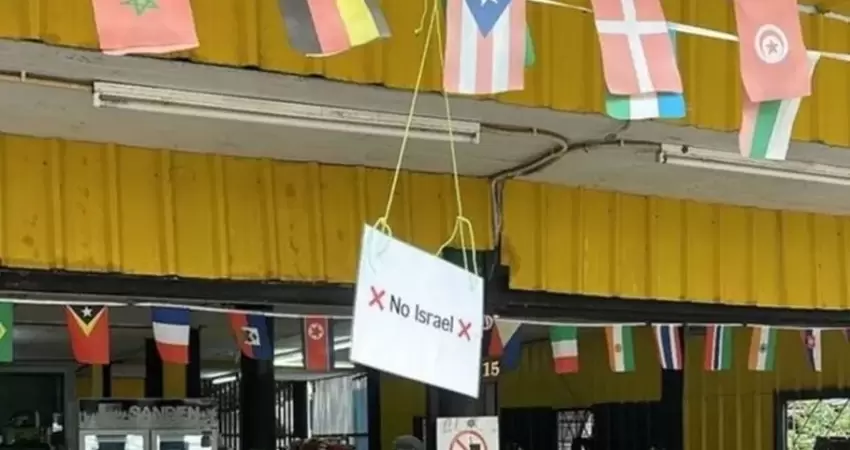 ويظهر المقطع وجود لوحة خلف السيدة مكتوب عليه "لا للسياح الإسرائيليين"، بالإضافة إلى صورة تاجر الجنس جيفري إبستين، في رفض للتعامل معهم بعد الإبادة الجماعية التي ارتكبت في قطاع غزة.