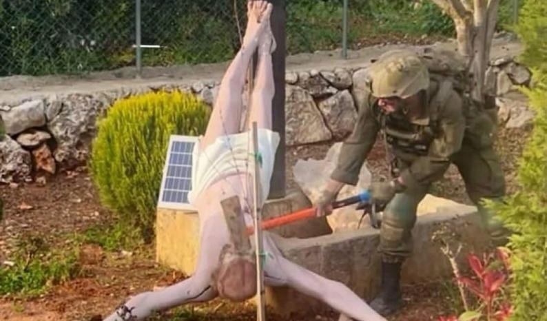 وثّق جندي من جيش الاحتلال الإسرائيلي جريمته بنفسه، بعدما أقدم على تحطيم تمثال للسيد المسيح في إحدى القرى جنوب لبنان، في اعتداء فجّ على الرموز الدينية، أثار موجة استنكار واسعة .