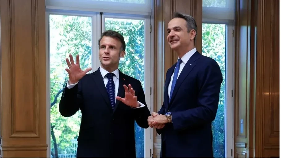 واستقبل رئيس وزراء اليونان كيرياكوس ميتسوتاكيس، الرئيس الفرنسي إيمانويل ماكرون، في المقر الرسمي لرئيس وزراء اليونان في أثينا، السبت، حيث وقّع الطرفان عدداً من الاتفاقات، إضافة إلى تجديد اتفاق أمني ثنائي سابق.