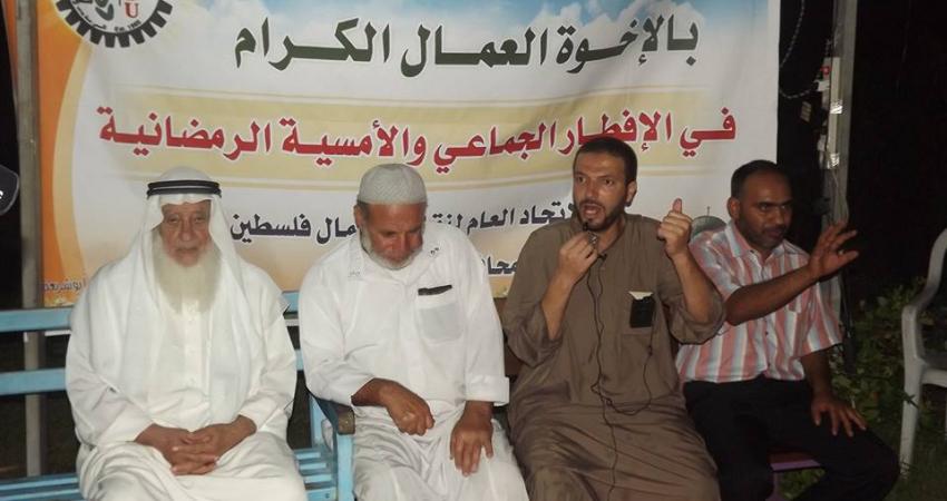 دعا رئيس النقابة العامة لعمال الزراعة والصناعات الغذائية علاء العمور إلى تكاثف الجهود المحلية والعربية لرفع الحصار الإسرائيلي المفروض على قطاع غزة. وقال العمور خلال أمسية رمضانية وإفطار جماعي نظمها الاتحاد العام لنقابات عمال فلسطين بمدينة أصداء جنوب قطاع غزة أمس: "إن شريحة العمال تضم نسبة كبيرة من المتعطلين عن العمل بسبب تشديد الحصار الإسرائيلي على قطاع غزة"، داعيا إياهم إلى مزيد من الصبر والثبات. وحول هدف الأمسية، تحدث بأن الهدف منها هو الخروج من الأجواء الروتينية في تنظيم الفعاليات، وذلك من خلال الدمج بين الإفطار الجماعي، والأمسية الرمضانية والبرنامج التثقيفي". وتخلل الأمسية عدة فقرات متنوعة بدأت بالإفطار الجماعي، وفقرات إنشادية، ومختارات من الكوميديا الفلسطينية قدمها الفنان عز الدين أبو شريعة. وتطرق أبو شريعة للحديث عن المزاح النبوي مستشهدًا ببعض القصص التي حدثت وأقرها النبي صل الله عليه وسلم، لافتا إلى المزاح الذي يهدف صاحبه إلى السخرية من الآخرين وهو ما لم يقره النبي. وتعقيبا على مشاركته، أعرب الفنان أبو شريعة عن سعادته بالتواجد بين شريحة عمال فلسطين، مؤكدًا بأن هذه الفعالية تأتي في شهر فضيل وأهمية التجمعات الترفيه مهمة لزيادة الروابط بين الاتحاد والعمال. وبين أنه وبرغم معاناة شريحة العمال في قطاع غزة إلا أن نسبة البطالة فيها أقل من الدول العربية، منوها إلى حلول مستمرة من قبل المؤسسات المختصة وسعي نقابات العمال إلى تدويل قضيتهم من خلال جولاتها الخارجية.