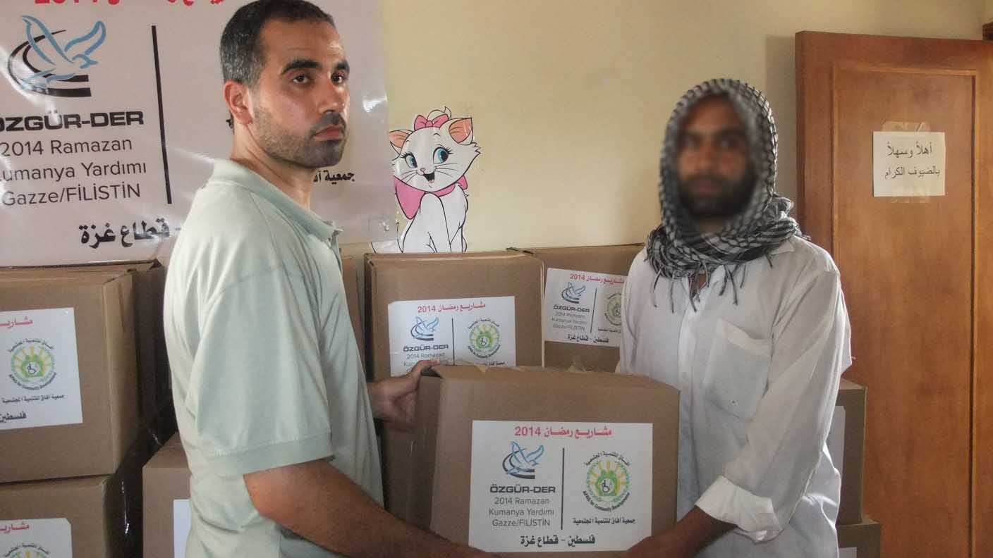 وزعت جمعية آفاق للتنمية المجتمعية في مخيم البريج وسط القطاع طروداً غذائية على الأسر الفقيرة في المخيم بمناسبة حلول شهر رمضان المبارك. وقال رئيس الجمعية ماهر عقل: "إن الجمعية وزعت 100 طرد غذائي على 100 أسرة قيمة كل طرد 150 شيكل وذلك بالتعاون مع مؤسسة الشعب التركي "أوزكار دير". وأكد عقل أن هذه المساعدات تأتي للوقوف بجانب أهلنا في ظل الظروف الاقتصادية الصعبة التي يعيشها الفلسطينيين نتيجة الحصار الإسرائيلي. وأعرب عقل عن أمله باستمرار هذه المساعدة لأبناء شعبنا الفلسطيني؛ للتخفيف من معاناتهم المستمرة بسبب الاحتلال.