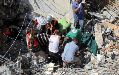 انتشلت الطواقم الطبية في قطاع غزة، عصر الاثنين، جثماني شهيدين من خزاعة شرق خانيونس، هما حلمي احمد قديح 067 عاما) ومحمود عبد ربه ابودقة (22 عامًا). وكانت قوات الاحتلال ارتكبت مجزرة في بلدة خزاعة في 24 من الشهر الماضي راح ضحيتها العشرات من المدنيين، فيما بقي العشرات مفقودين تحت الانقاض. وفي وقت سابق، استشهد المواطن محمد الرومي من رفح متأثرًا بجراح أصيب بها خلال العدوان الاسرائيلي على قطاع غزة. واعلن عن استشهاد الرومي في مستشفى العريش المصري حيث كان يتلقى العلاج. وكانت الرضيعة ميداء محمد أصلان "شهر ونصف" استشهدت متأثرة بجراحها التي أصيبت بها في قصف إسرائيلي سابق وسط قطاع غزة. وبهذا ترتفع حصيلة العدوان الإسرائيلي على القطاع 1944 ونحو 10 آلاف جريح.