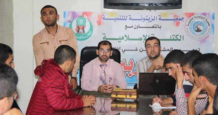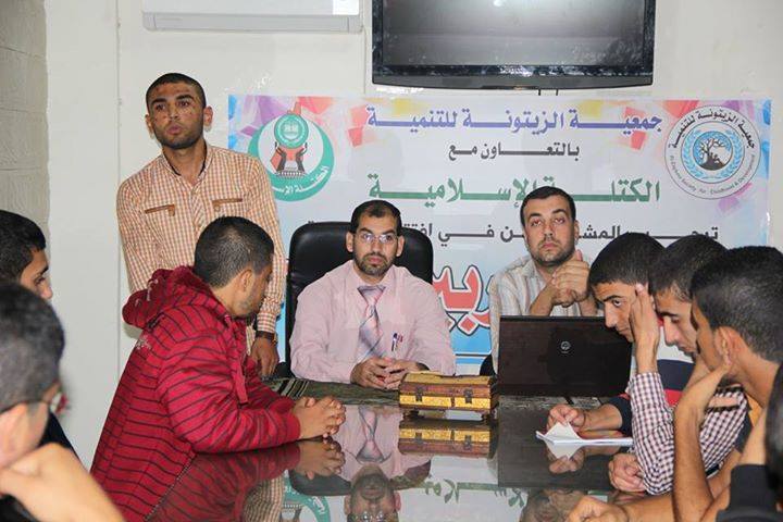 افتتحت الكتلة الإسلامية بمدينة دير البلح وبالتعاون مع جمعية الزيتونة للتنمية دورة بعنوان "إعداد المدربين" وذلك بمشاركة أكثر من 30 طالب جامعي، في مكتبة مسجد أبو سليم. وفي كلمة لمحمد أبو ميري منسق الكتلة بمنطقة البلد رحب فيها بالإخوة المدربين وبالأستاذ محمد جبر مدير جمعية الزيتونة، ودعا الإخوة الطلاب للالتزام في الدورة بتحصيل أكبر قدر من الفائدة. وأوضح جبر أن الهدف من الدورة هو صقل شخصية الطالب الجامعي بحيث يكون مدرب للأجيال ومؤثر فيهم من خلال تعرفه على طرق التدريب وفن الإقناع في الآخرين. وفي ذات السياق عبر الطلاب المشاركين في الدورة عن وافر شكرهم للإخوة في الكتلة والجمعية الزيتونة على جهودهم المباركة في تنظيم مثل هذه الدورات العلمية المفيدة.