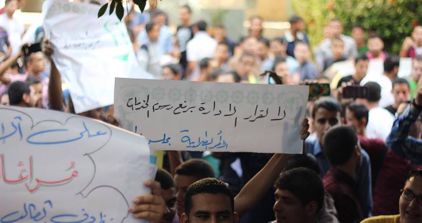 نظم مجلس طلاب الكلية الجامعية بغزة أمس الأربعاء وقفة طلابية احتجاجية بمشاركة المئات من الطلاب تنديداَ بالقرار الأخير الذى أصدرته الكلية الجامعية والذى يقضى بفرض رسوم خدمات طلابية بقيمة 5 دنانير فصلية على كل طالب في كل فصل دراسي . وطالب مجلس الطلاب وفى بيان وصل وكالة [color=red]"فلسطين الآن" [/color]نسخة عنه إدارة الكلية بتعليق العمل بالقرار ومراعاة الظروف الاقتصادية الصعبة التي يمر بها أبناء الشعب الفلسطيني في القطاع . وأكد مجلس الطلاب على أن تنظيم هذه الوقفة يأتي من باب الشعور بالمسئولية اتجاه الطلبة في ظل الحصار الخانق والظروف الصعبة التي يحياها القطاع، مشدين على أن هذه الفعالية سيتبعها عدد من الفعاليات الطلابية الأخرى في حال عدم استجابة ادارة الكلية لمطالب الطلاب العادلة ومراعاة ظروفهم . وأفاد المجلس أن هذه الفعاليات جاءت بعد تواصلهم مع إدارة الكلية خلال عدة زيارات إلا أن الكلية أصرت على موقفها القاضي بتطبيق القرار في حينه ، مؤكدين على أن المجلس لن يوقف فعالياته حتى تتراجع إدارة الكلية عن القرار . [img=102014/view_1414656897.jpg]وقفة طلابية احتجاجية[/img] [img=102014/view_1414656901.jpg]وقفة طلابية احتجاجية[/img] [img=102014/view_1414656904.jpg]وقفة طلابية احتجاجية[/img] [img=102014/view_1414656909.jpg]وقفة طلابية احتجاجية[/img] [img=102014/view_1414656912.jpg]وقفة طلابية احتجاجية[/img] [img=102014/view_1414656917.jpg]وقفة طلابية احتجاجية[/img] [img=102014/view_1414656721.jpg]وقفة طلابية احتجاجية[/img] [img=102014/view_1414656925.jpg]وقفة طلابية احتجاجية[/img] [img=102014/view_1414656928.jpg]وقفة طلابية احتجاجية[/img] بالصور: الكتلة تنظم وقفة طلابية احتجاجية بالصور: الكتلة تنظم وقفة طلابية احتجاجية بالصور: الكتلة تنظم وقفة طلابية احتجاجية بالصور: الكتلة تنظم وقفة طلابية احتجاجية بالصور: الكتلة تنظم وقفة طلابية احتجاجية بالصور: الكتلة تنظم وقفة طلابية احتجاجية بالصور: الكتلة تنظم وقفة طلابية احتجاجية بالصور: الكتلة تنظم وقفة طلابية احتجاجية بالصور: الكتلة تنظم وقفة طلابية احتجاجية