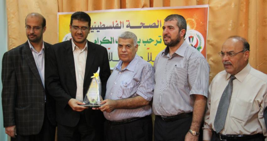 كرمت وزارة الصحة الفلسطينية، وفد البعثة الطبية الفلسطينية المرافق لحجاج بيت الله الحرام من قطاع غزة، وذلك في مقر الوزارة بمدينة غزة. حيث أثنى وكيل وزارة الصحة د.يوسف أبو الريش، على الجهود التي بذلتها البعثة الطبية المرافقة للحجاج في رعاية حجاج فلسطين. وأوضح أبو الريش، أن بعثة الحجاج لهذا العام مثلت الشعب الفلسطيني من كافة أطيافه في الضفة الغربية وقطاع غزة. وفي ختام اللقاء قدمت الدروع التكريمية للمشاركين في بعثة الحجاج، تكريما على جهودهم في تقديم الرعاية الطبية لحجاج بيت الله الحرام.