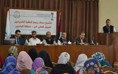 احتفلت جمعية الملتقى التربوي باختتام مشروع سداد رسوم مجموعة من الطلبة الخريجين من ذوي الوضع الاقتصادي المتردي. وأوضح الملتقى في تصريح وصل وكالة [color=red]"فلسطين الآن"[/color] أن الاحتفال بتمويل من مملكة البحرين وبالتعاون مع الكلية الجامعية. وانطلق الاحتفال بحضور ومشاركة هاني قوصة مساعد نائب الرئيس للتخطيط والعلاقات الخارجية، وأحمد كردية رئيس وحدة تنمية الموارد، السيد عدنان الحمادين نائب رئيس قسم شئون الطلبة،أكرم أبو جياب المدير التنفيذي للجمعية، والطلبة المستفيدين من المنحة.