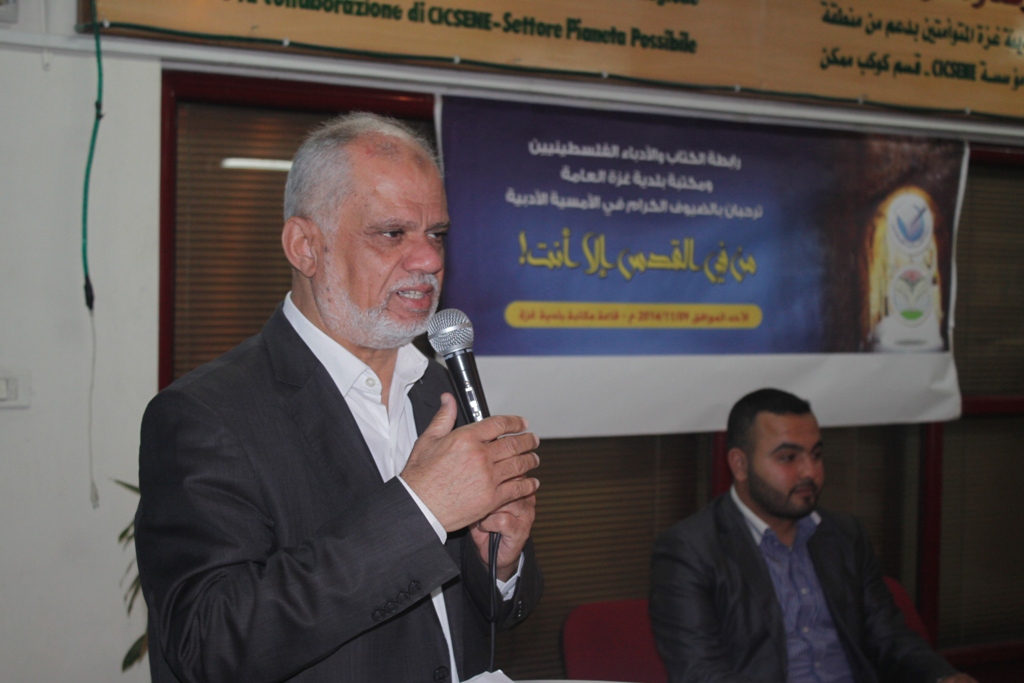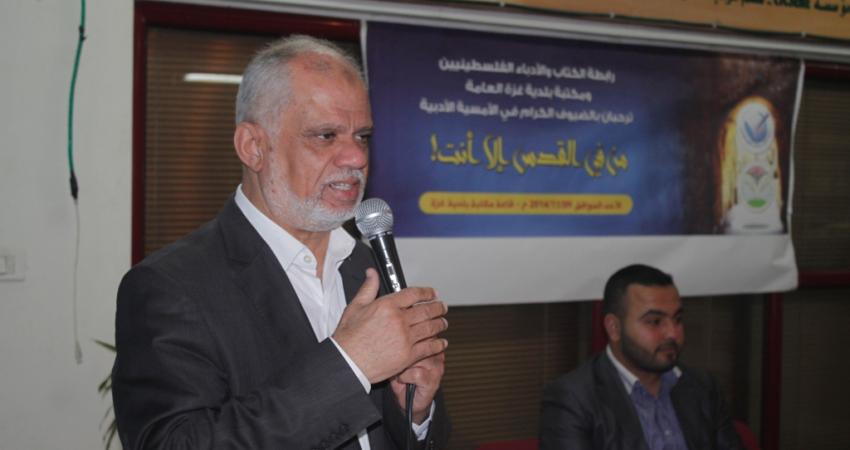أقامت رابطة الكتاب والأدباء الفلسطينيين أمسية شعرية بعنوان "من في القدس إلا أنت"؛ تضامناً مع هبة أهل القدس المحتلة في وجه الاعتداءات الإسرائيلية المستمرة, وذلك مساء أمس الأحد بمكتبة بلدية غزة, بحضور لفيف من الشعراء والمثقفين. وشارك في الأمسية العديد من الشعراء والشاعرات بقصائد تنوعت بين الشعر الموزون والشعبي, والتي تغنت بالعملية البطولية التي نفذها الاستشهادي إبراهيم عكاري بسيارته ودهس خلالها عدد من المستوطنين وقتل اثنين منهم, ونددت بالصمت العربي والإسلامي تجاه تدنيس الأقصى والمقدسات من قبل الاحتلال الإسرائيلي. بدوره أثنى رئيس رابطة الكتاب الدكتور عطاالله أبو السبح على القصائد المشاركة وعلى الحضور المميز من الأدباء والكتاب, واختتمت الفعالية بقصيدة "في القدس" للشاعر الفلسطيني تميم البرغوثي ألقتها الطفلة شهد دلول.