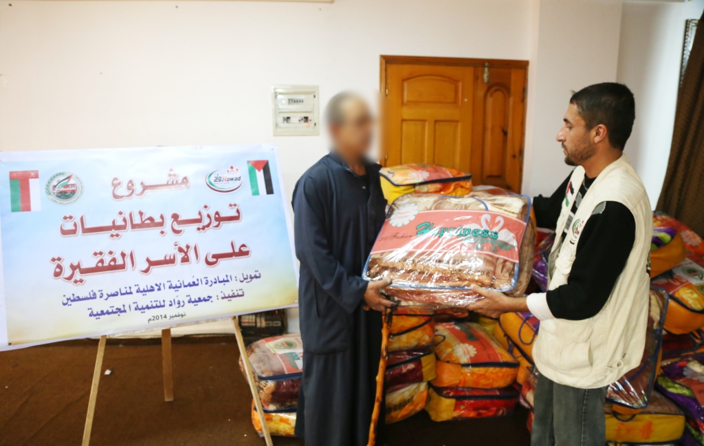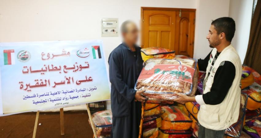 وزعت جمعية روّاد للتنمية المجتمعية عشرات البطانيات على الأسر الفقيرة في مدينة غزة، وذلك بدعم كريم من المبادرة العُمانية الأهلية لمناصرة فلسطين. ويأتي تنفيذ هذا المشروع تماشياً مع سياسة الجمعية الرامية للوقف إلى جانب الأسر الفقيرة والمهمشة ومساندتها خصوصاً في ظل تردي الأوضاع المعيشية وبدء موسم الشتاء، حيث يعتبر الشتاء معاناة جديدة تُضاف إلى مأساة فقرهم. وقال مدير الجمعية محمد أبو سيدو في بيان وصل [color=red]"فلسطين الآن[/color]"، إن هذا التوزيع يُخفف من معاناة الأسر المحتاجة خصوصاً أنه يستهدف شريحة واسعة من أصحاب الفقر المدقع في قطاع غزة،مشيرا تنفيذ مشروع توزيع المعاطف والأحذية على أطفال الأسر الفقيرة خلال الأيام القادمة. وشكر أبو سيد والمبادرة العُمانية على دعم لهذا المشروع متمنياً في الوقت نفسه استمرار هذا التمويل لدعم صمود الفقراء في غزة. وفي سياق متصل أعربت الأسر المستفيدة عن شكرها للجمعية وللمُبادرة على دعمها المتواصل، داعية جميع مؤسسات المجتمع المحلي إلى تحمل مسؤولياته في مساندة الفقراء ونشر معاني التكاتف والتضامن في المجتمع.