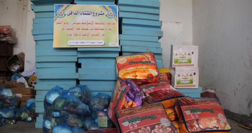 وزعت حركة المقاومة الإسلامية حماس في مدينة دير البلح مساء أمس الجمعة, مساعدات إنسانية على المتضررين من العدوان الإسرائيلي على قطاع غزة شملت فرشتين وحرام وحصيرة، بالإضافة إلى طرد غدائي لكل متضرر. وأكدت الحركة على أنها وزعت على ما يقارب ألف متضرر جزئي خلال العدوان الأخير على القطاع من المساعدات العينية والمادية. وكانت الحركة وزعت الشهر الماضي مساعدات نقدية على الأسر الفقيرة والمتضررة جراء العدوان وذلك تخفيفا من معاناة المواطنين حيث بلغ مبلغ المساعدة الواحدة 500 دولار.