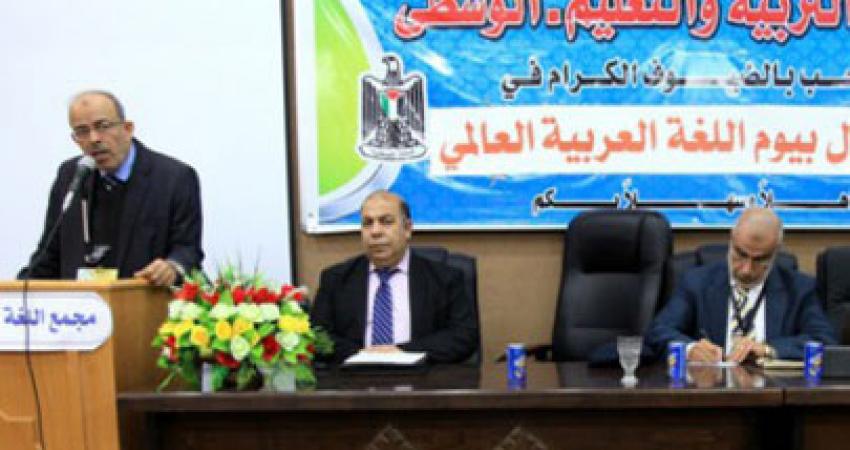 نظم مجمع اللغة العربية التابع لوزارة التربية والتعليم العالي احتفالاً بمناسبة اليوم العالمي للغة العربية الذي يصادف الثامن عشر من ديسمبر من كل عام. وأكد رئيس مجمع اللغة العربية يوسف رزقة أن الحرف العربي يواجه عدة تحديات أبرزها استخدام وسائل التواصل الاجتماعي الرموز اللاتينية والأحرف غير العربية وتفشي العامية في مواقع ووسائل التواصل، وقيام عدد من الدول العربية بتوثيق إنجازاتها باللغات الأجنبية. وأوضح رزقة أن القصور جاء من أهل اللغة العربية وهم الدول العربية باهتمامهم باللغات الأجنبية الأخرى وتركهم للعربية في تعاملاتهم اليومية. ودعا رئيس المجمع جامعة الدول العربية والجامعات العربية والمجامع اللغوية إلى العمل الجاد للمحافظة على اللغة العربية من جميع الجوانب وعدم تركها أمام المؤثرات السلبية التي تقلل من شأنها. وأشار رزقة إلى أنه رغم كل التحديات إلا أن الله حفظ اللغة العربية لأنها لغة القرآن الكريم، منوهاً إلى أن المجمع يبذل كل الجهود من أجل المحافظة عليها. وطالب الطواقم التعليمية وأولياء الأمور بأن تكون اللغة العربية الأساس في كل المعاملات الحياتية في المدرسة والبيت والعمل والأسواق. وبين رزقة أنه باللغة العربية نقاوم المحتل وبها نعبر عن مشاعرنا، موضحًا أن من يتحدثون بها كلغة أولي في العالم 279 مليون نسمة تقريباً، وكلغة ثانية 130مليون وهذا يتطلب المزيد من الاهتمام بها. بدوره، قال نائب رئيس المجمع كمال غنيم: "اللغة العربية كانت لغة المراسلات والدبلوماسية بين الدول العربية والأجنبية حين تمسك بها العرب وكانت مفخرة لهم". وبين غنيم أن فكرة إنشاء مجمع اللغة العربية في غزة بشكل عام والمدرسي بشكل خاص المدرسي جاء للارتقاء بمستوي اللغة العربية لدي الطلبة منذ الصغر.