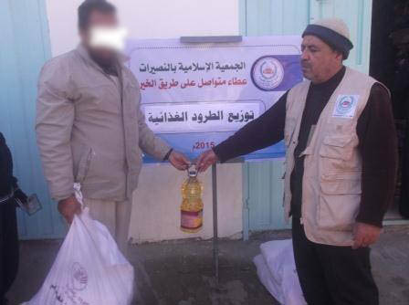 وزعت الجمعية الإسلامية في مخيم النصيرات وسط القطاع، طروداً غذائية على 620 عائلة فقيرة، بتمويل من مؤسسة "العروة الوثقى" من خلال اتحاد المؤسسات. وأوضح مدير الجمعية محمد الحاج، أن هذا المشروع يأتي مع ازدياد حاجة الناس الماسة لما يوفر لهم حياة كريمة، نتيجة للحصار المفروض على القطاع منذ 8 سنوات. وبيّن الحاج أن هذا المشروع من ضمن المشاريع الخيرية الحيوية التي تنفذها الجمعية من حين إلى آخر لصالح الأسر الفقيرة . وأضاف الحاج : "وزعت الجمعية الطرود الغذائية بالتنسيق مع مندوبيها المنتشرين في كل مناطق النصيرات, حيث لقي المشروع ترحيبًا واسعًا من الأسر المستفيدة".