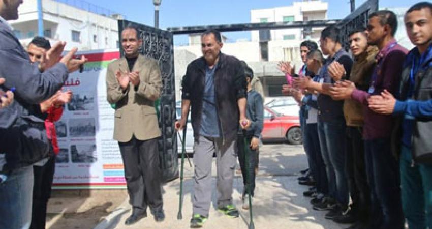 كرمت مؤسسة بيت الصحافة اليوم الاثنين الصحفي الجريح حاتم موسى مصور وكالة أسوشيتد برس العالمية وسط حضور إعلامي كبير بمقر المؤسسة بمدينة غزة. وأصيب موسى في العدوان الإسرائيلي على قطاع غزة في (يوليو وأغسطس 2014)، والذي استشهد فيه أيضًا 17 صحفيًا بنيران الاحتلال. ورحب رئيس مجلس إدارة المؤسسة بلال جاد الله بالإعلاميين والاعلاميات الحضور، مؤكداً ان مهنة الصحافة هي مهنة المتاعب والمصاعب. وقال جاد الله في كلمته: "إنها لحظات يمزجها الفرح والحزن وهي لحظات تؤكد بأن الزميل موسى يرسل من جديد رسالة للعالم أجمع بأن غزة بها صناع للحقيقة وأصحاب القلم والصورة الذين سيواصلون أداء واجبهم الاعلامي والمهني". وجدد جاد الله مطالبته للهيئات والمؤسسات الدولية وكل النقابات ومؤسسات الدفاع عن حرية الصحافة بالضغط على الاحتلال الاسرائيلي لتجنب استهداف الصحفيين الفلسطينيين خلال تغطيتهم الميدانية للأحداث الدائرة في الاراضي الفلسطينية. وألقت الطفلة رهام أبو القرايا قصيدة شعريه تعنى بالصحفيين وفي مقدمتهم الصحفي الجريح حاتم موسى. وفي كلمه مقتضبه، أثنى موسى على اللفتة الطيبة التي نظمتها مؤسسة بيت الصحافة لتكريمه، مؤكداً أن بيت الصحافة من المؤسسات الرائدة والسباقة في خدمة الصحفيين الفلسطينيين. وأكد أنه فخور بالتواجد بين زملائه بعد رحلة علاج طويلة ابعدته عن ممارسه مهنة الصحافة، مؤكداً على أنه رغم بتر قدمه الا أنه سيواصل مسيرته الصحفية لتغطية الأحداث في قطاع غزة. وفي نهاية حفل التكريم، قدم جاد الله درعاً تكريماً للصحفي حاتم موسى تقديراً لدوره في العمل الصحفي على مدار سنوات طويلة.