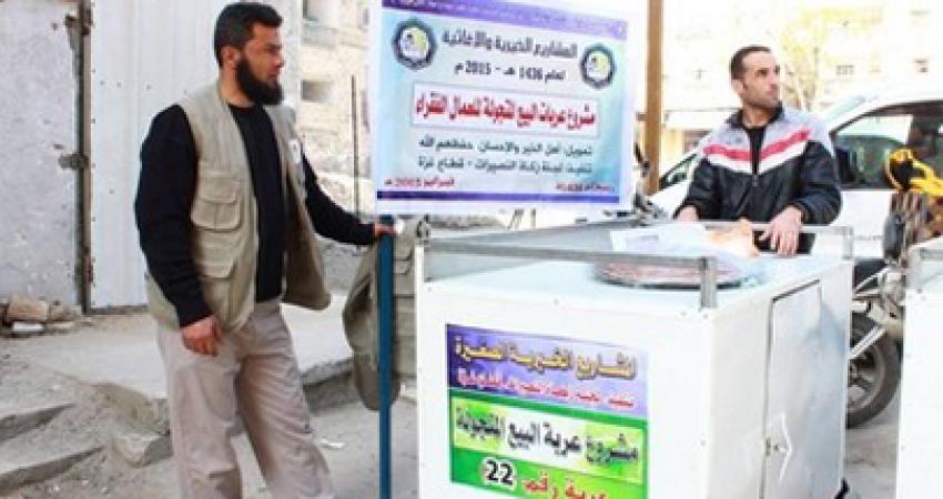 وزعت لجنة زكاة النصيرات وسط القطاع، دفعة جديدة من "عربات البيع المتجولة" مؤخراً لعدد من الفقراء، الذين يسعون إلى تحصيل رزقهم بالعمل، متحدين الواقع الصعب والظروف السيئة التي يمر بها قطاع غزة. وقال أمين سر اللجنة وفا عياد : "إن هذا المشروع يأتي في ظل الظروف والأوضاع الصعبة التي يمر بها قطاع غزة جراء الحصار الخانق علية منذ سنوات، والتخفيف عن أبناء شعبنا؛ لإدخال البهجة والسرور على وجه العائلات المستورة". ودعا الشباب والعاطلين عن العمل إلى نفض غبار الكسل عن أنفسهم، والتفكير في المشاريع الصغيرة، التي يمكن أن تتطور فيما بعد إلى مشاريع فريدة من نوعها". وأكد عياد أن المشاريع الصغيرة تكاد تمثل المخرج الوحيد من مشكلة البطالة، التي يعاني منها آلاف الشباب، داعيًا الجهات الرسمية إلى وضع خططٍ عمليةٍ؛ لمساعدة الشباب وتشجعيهم على تطوير أفكارهم الصغيرة، التي تعود بالنفع على المجتمع.