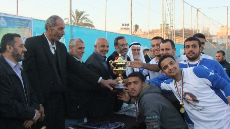 نظمت اللجنة الرياضية لحركة المقاومة الإسلامية "حماس" بمخيم البريج "الصاعقة الكروية" لكرة القدم في المخيم وذلك وفاء للأسرى تحت عنوان " الحرية للأسرى صاعقة الأسير نائل البرغوثي " . حيث أقيمت "الصاعقة" عصر أمس الأحد، على أرض ملعب الشهيد أحمد الجعبري في المخيم بمشاركة 8 فرق حملت أسماء الأسرى ، وبحضور القيادي في حماس موسى السماك و المحرر توفيق أبو نعيم. واختتمت "الصاعقة" بفوز فريق الأسير حسن سلامة على فريق الأسير نائل البرغوثي بهدف واحد مقابل لا شيء للأخير وتم بعدها مباراة ودية بين الفريق الفائز فريق حسن سلامة و فريق رابطة الأسرى . وشكر المحرر أبو نعيم اللجنة الرياضية لحماس و الفرق المشاركة في هذا الدوري على وفائهم للأسرى و التي تأتي في ذكرى يوم الأسير الفلسطيني . وأكد أبو نعيم أن الأسرى في سجون الاحتلال منهم الصغير الذي ولد في السجن ومنهم من بلغ 80 عاماً ومنهم القادة ومنهم أعضاء المجلس التشريعي ومنهم الحرائر، مشيراً إلى أن موعد الفرج لهم بات قريباً ولن يتم تنفيذ صفقة وفاء للأسرى حتى يلتزم الاحتلال بجميع بنود صفقة وفاء الأحرار الأولى . وفي ختام الصاعقة تم تكريم الفريق الفائز بالمرتبة الأولى و الفريق الفائز بالمرتبة الثانية و فريق رابطة الأسرى . [img=042015/view_1429511608.jpg]ضع تعليق الصورة هنا[/img] [img=042015/view_1429511609.jpg]ضع تعليق الصورة هنا[/img] [img=042015/view_1429511610.jpg]ضع تعليق الصورة هنا[/img] [img=042015/view_1429511612.jpg]ضع تعليق الصورة هنا[/img] [img=042015/view_1429511623.jpg]ضع تعليق الصورة هنا[/img] [img=042015/view_14295116231.jpg]ضع تعليق الصورة هنا[/img]