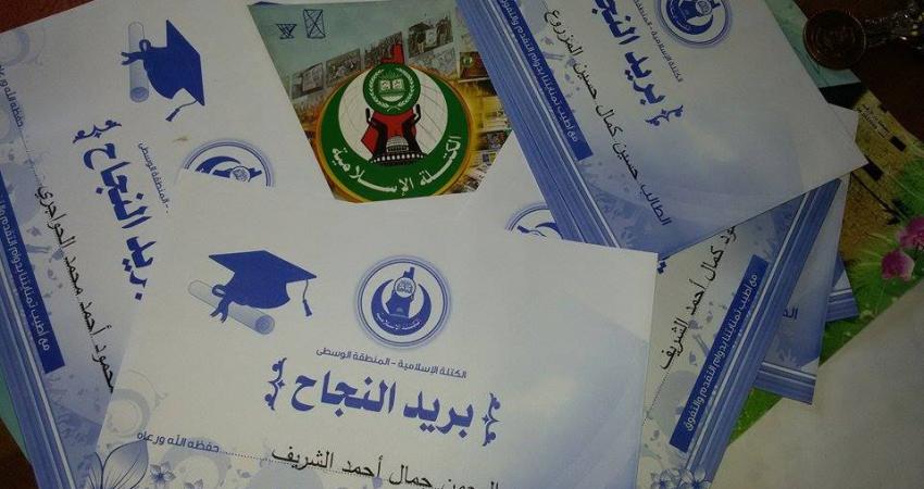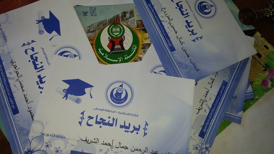 أنهت الكتلة الإسلامية بالمنطقة الوسطى استعداداتها لإرسال بريد النجاح لـ2000 طالب ثانوية عامة في المحافظة، ضمن خطة برنامج نحو الهدف، حيث سيتم توزيع البريد على 9 مدارس حكومية موزعة على المحافظة. وأكد مسؤول إعلام الكتلة بالوسطى طارق طبازة في حديثه لـ[color=red]"فلسطين الآن"[/color] أن هذا البريد يحتوي على نصائح وإرشادات للطلبة تعينهم على المذاكرة، وأدعية الامتحان وأذكار ينصح بقراءتها صباح يوم الاختبار. يذكر أن الكتلة الإسلامية بالوسطى ومع بداية الفصل أول أطلقت مشروعها المركزي (نحو الهدف) في الجامعة الإسلامية بحضور القيادي خليل الحية، وبمشاركة كبيرة من طلاب توجيهي، وجرى توضيح فقرات المشروع للطلاب وتم تنفيذ غالبيتها وستختتم بزيارات للطلاب الناجحين.