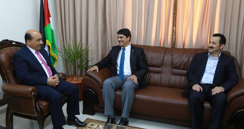 التقى وزير الأشغال العامة والإسكان د.م مفيد محمد الحساينة وفدا من مؤسسة تيكا التركية يترأسه المدير التنفيذي سردارتشام، ناقش معه عدد من مشاريع الاعمار، وإنشاء عدد من الوحدات السكنية لأصحاب المنازل المدمرة. ورحب الوزير الحساينة بجهود مؤسسة تيكا التركية ودورها في دعم ومساندة أبناء شعبنا الفلسطيني، ودعم صموده على أرضه. كما أبرق الوزير الحساينة بالتحية الكبيرة لتركيا رئيسا وحكومة وشعبا مشددا على جهود تركيا في دعم الشعب الفلسطيني والوقف بجانبه خلال العدوان. ومن جهته شكر السيد سردارتشام المدير التنفيذي لمؤسسة تيكا الوزير الحساينة على جهوده الكبيرة، مؤكدا على الدور الهام والبارز لوزارة الأشغال العامة الإسكان في مشاريع إعادة اعمار غزة .